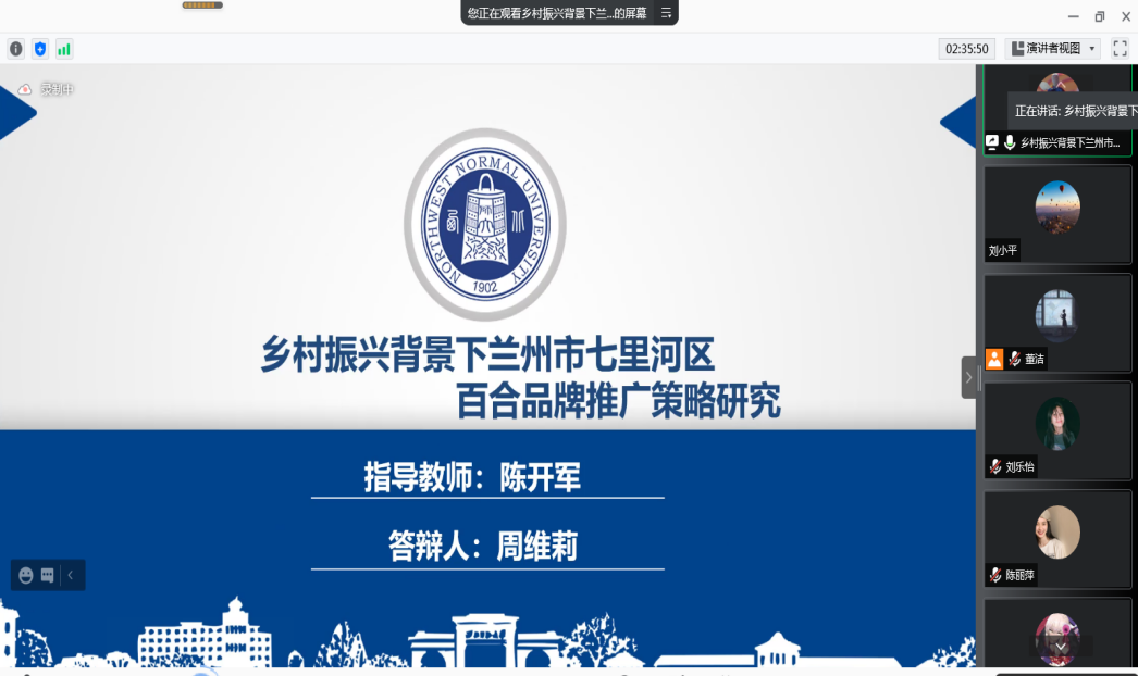 本次答辩会共有14个项目进行结项,有《国内经济大循环下中国石油兰州石化公司产品转型发展研究》等9个课题研究类项目、《经陇源——电商扶贫、爱心助残》等5个创新创业项目进行结项。项目研究成果丰富,涉及乡村振兴背景下,电子商务发展研究、脱贫农户脆弱性研究、兰州百合推广;信息化智能化时代社会关注问题的探索;学校五育并举人才培养体系下劳动教育实践及科创计划等。每个项目代表对本组的项目内容进行10分钟的简要介绍,之后评委逐一进行专业点评,给出修改建议。